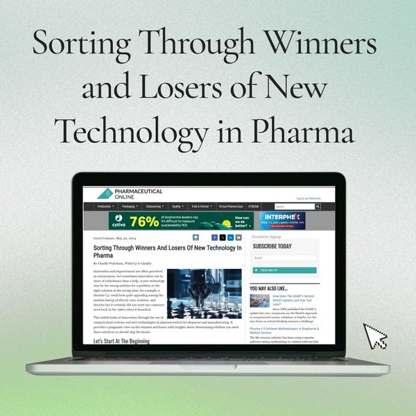 In this article, Charlie looks at innovation through the use of computerized systems and new technologies in pharmaceutical development and manufacturing. It provides a pragmatic view on the winners and losers with insights about determining whether you need these solutions or should skip the hassle.
